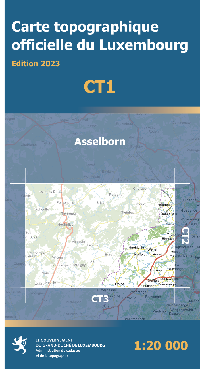 La subdivision du territoire du Grand-Duché en 16 feuilles est illustrée dans le tableau d'assemblage des cartes TC.